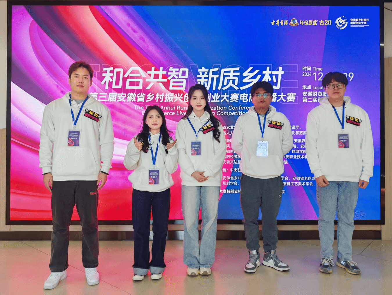 学院高度重视,积极动员,选派优秀教师有针对性地指导备赛和参赛。在文学院袁晓薇教授的精心指导下,来自2024级网络与新媒体专业(专升本)的5名同学(张六军、王鑫麒、王紫荻、王艳、鲁金健)组成团队、团结一心,充分发挥专业优势,锚定做乡村振兴的宣传者、实践者和参与者目标要求,持续打磨并优化团队直播方案,以饱满的热情投入比赛,做到严格要求、刻苦训练,通过以赛促学、以赛促创、以赛促教,将专业理论学习成果转化为实践动力,充分展现了合师学子扎实丰富、实践导向的专业技能和争先创优、实干担当的青春风采。(文学院:张六军)