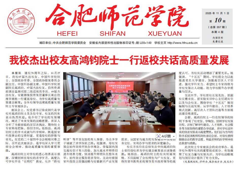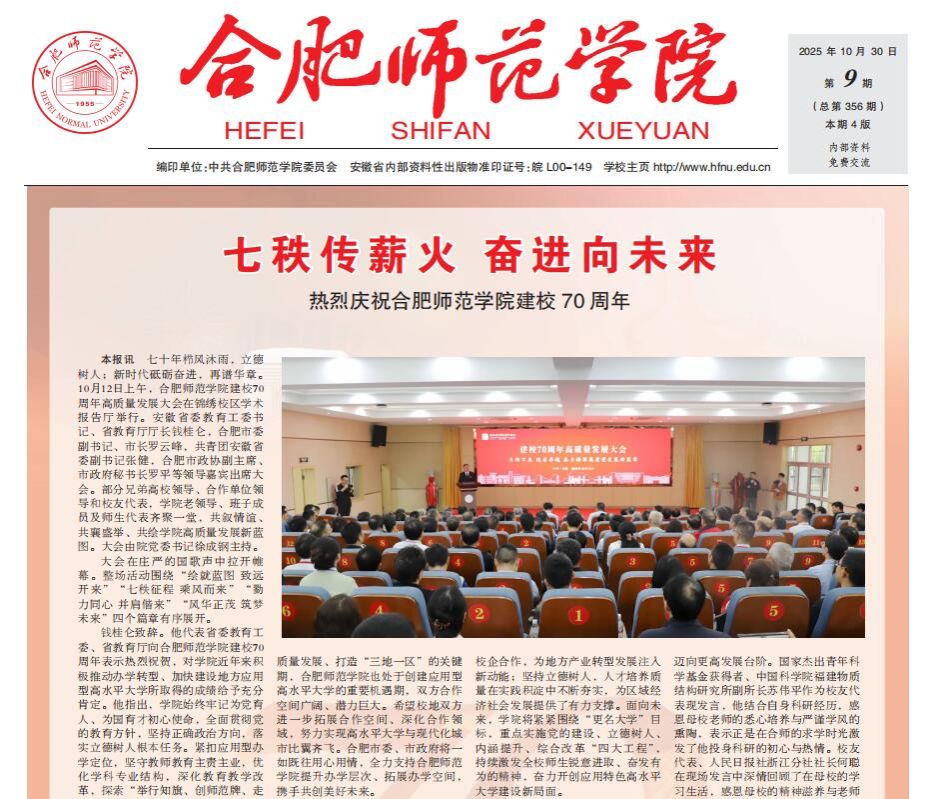 1956年,进修学院经历合并分流的重大调整。以进修学院原有师资、校舍、资产等为基础,独立设置合肥师范专科学校,并由时任进修学院院长张兆甲出任首任党委书记兼校长,以加速普高教育。新成立的合肥师范专科学校最初设有中文、史政、数学、物理、生物五个学科及教育学科教研室、体育教研室,学生785人,教师143人,职工152人。
