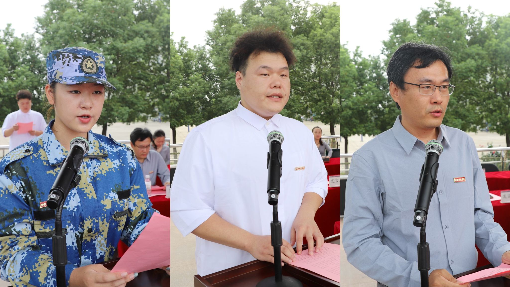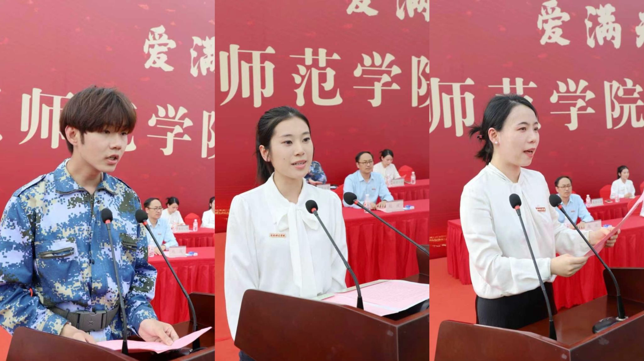 计算机与人工智能学院苏喻副教授、生物与食品工程学院崔奕蓝同学、马克思主义学院许涛同学分别作为锦绣校区教师代表、本科新生和老生代表发言。电子信息与集成电路学院樊敏老师、文学院陈钧浩同学、数学与统计学院王菲菲同学分别作为滨湖校区教师代表、本科新生和老生代表发言。