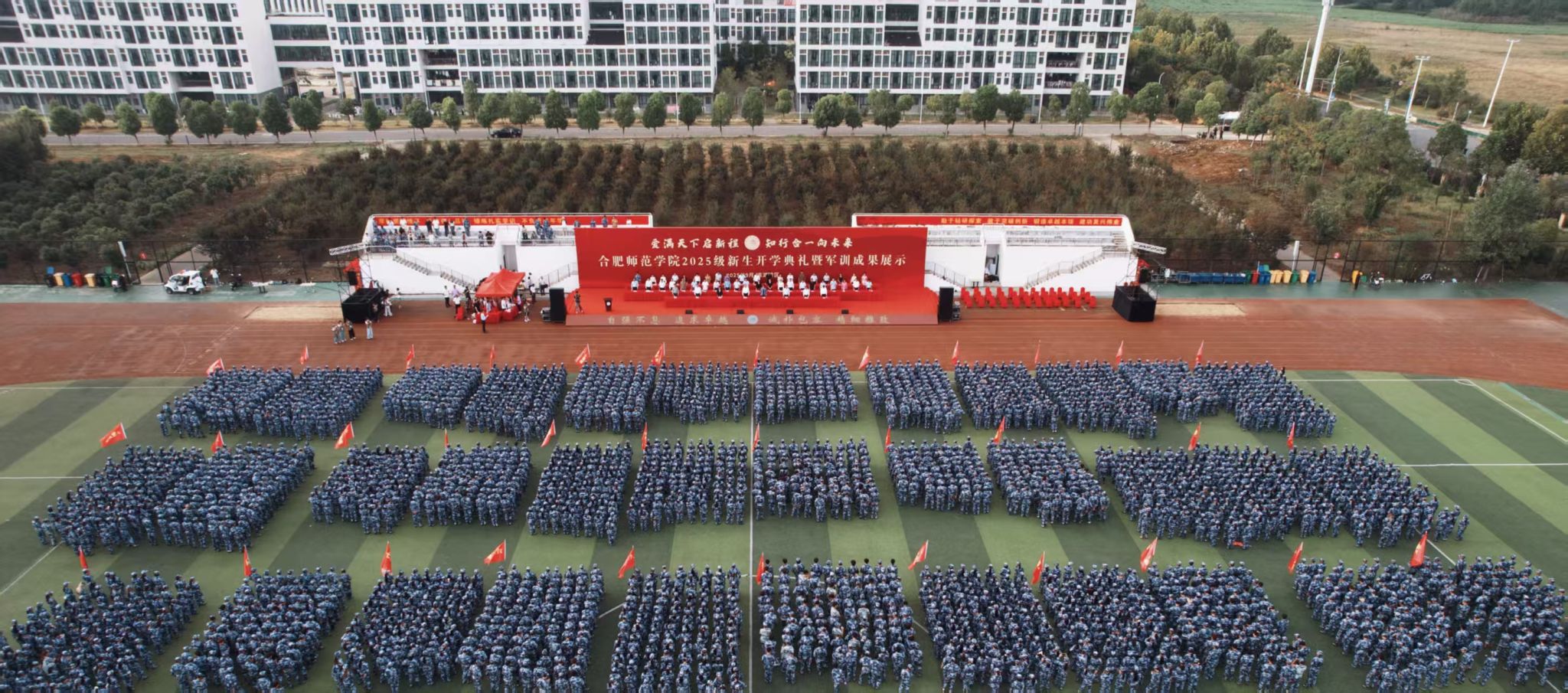 金秋送爽,丹桂飘香。9月28日,学院2025级新生开学典礼暨军训成果展示分别在锦绣校区和滨湖校区田径运动场举行。