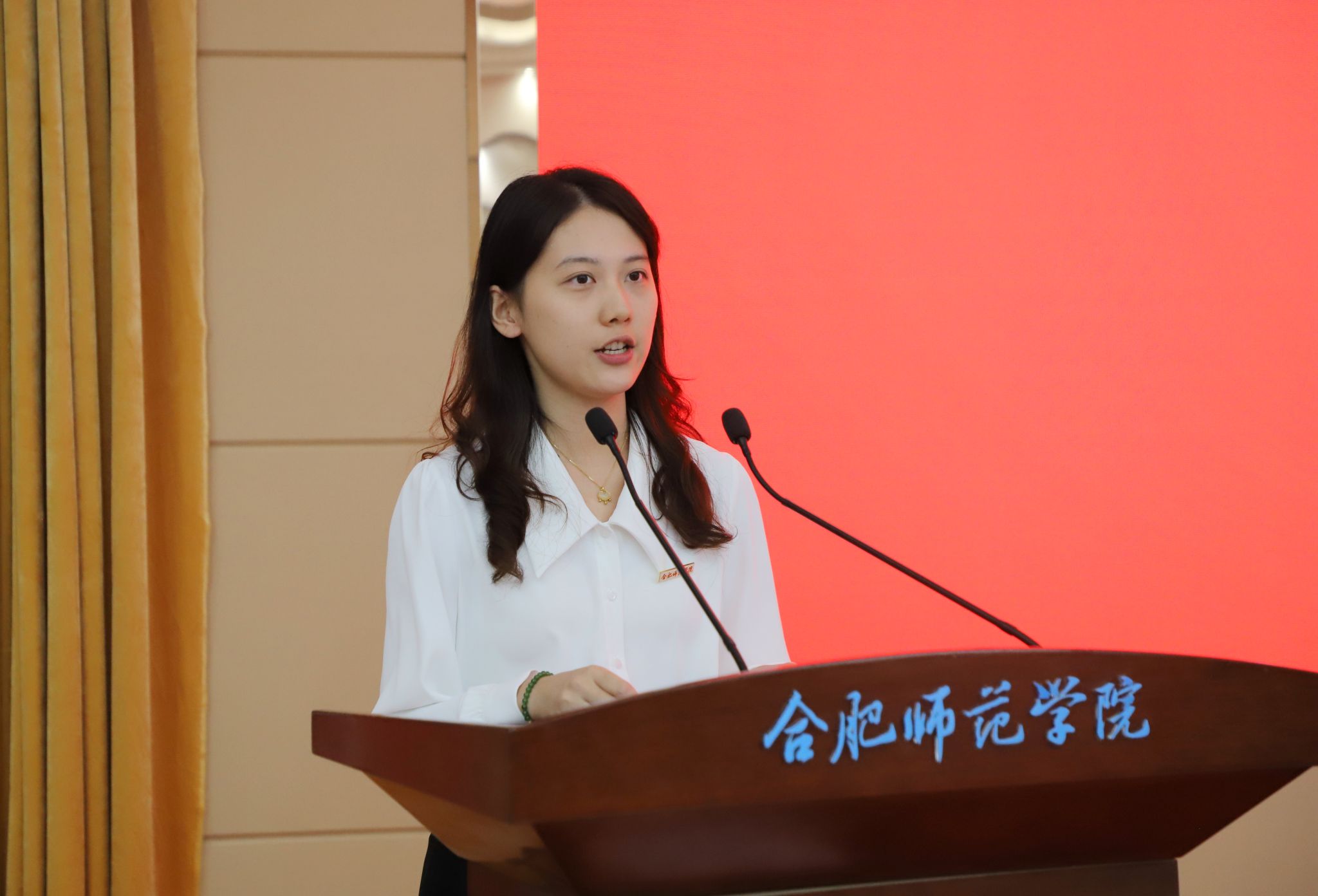 学生代表、2024级学科语文专业研究生程春晖同学发言,祝福母校70华诞。她表示,新时代的合师学子将积极践行“自强不息、追求卓越”的合师精神,以专业所长服务基础教育与经济社会发展,以青春之我、奋斗之我为教育强省、教育强国建设贡献青春力量。