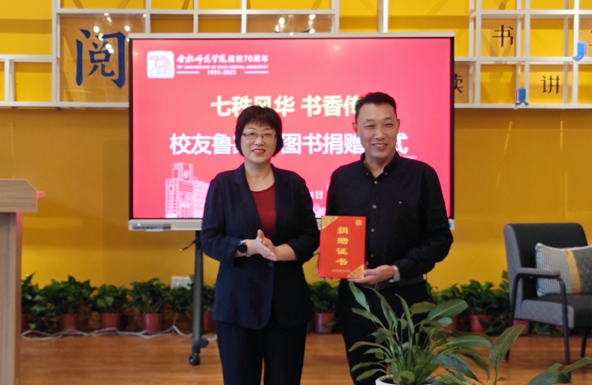 10月11日下午,“七秩风华 书香传情”鲁家文校友图书捐赠仪式在锦绣校区图书馆二楼“阅+历”读书讲堂举行。院党委副书记、院长方东玲,党委委员、副院长华银峰出席活动。