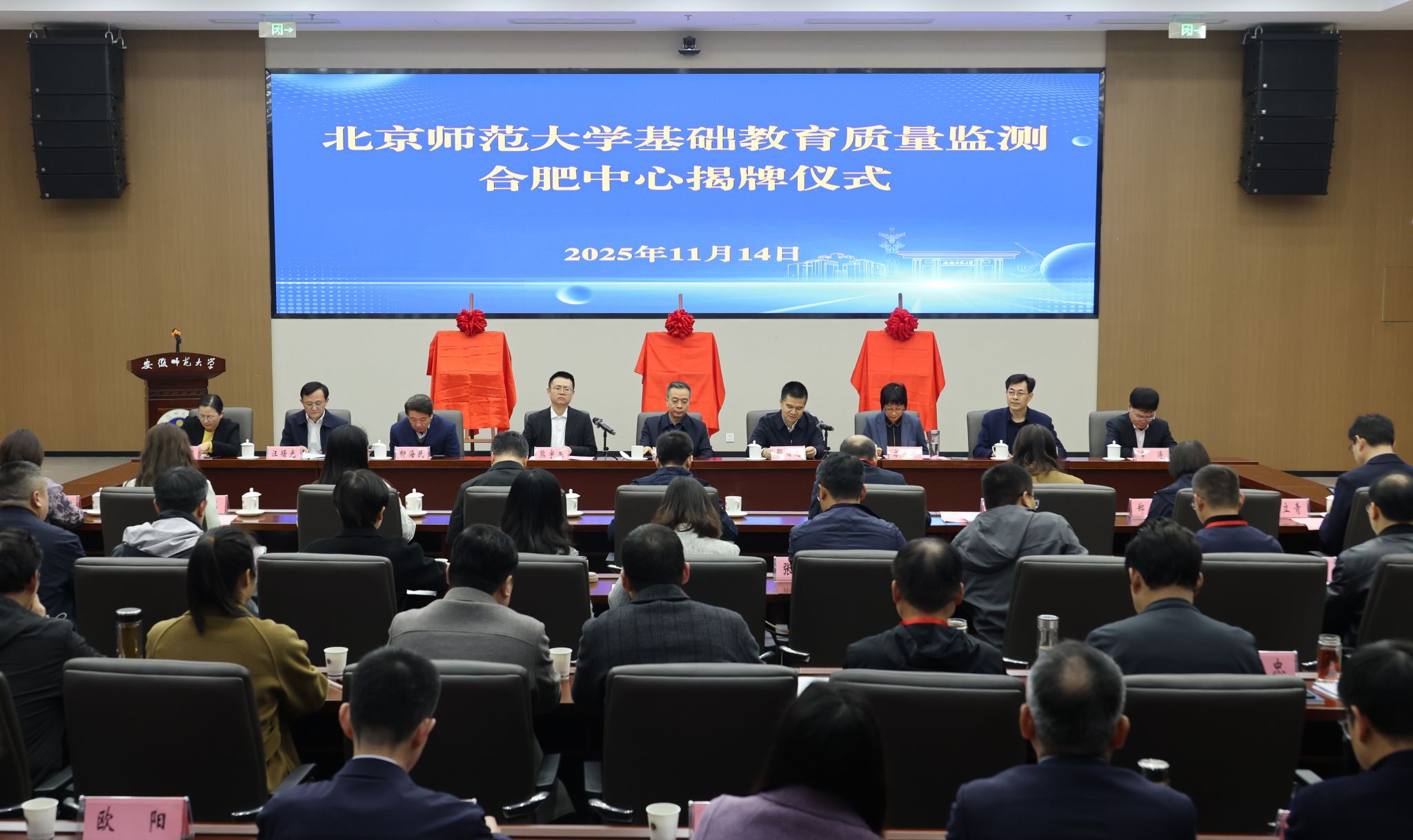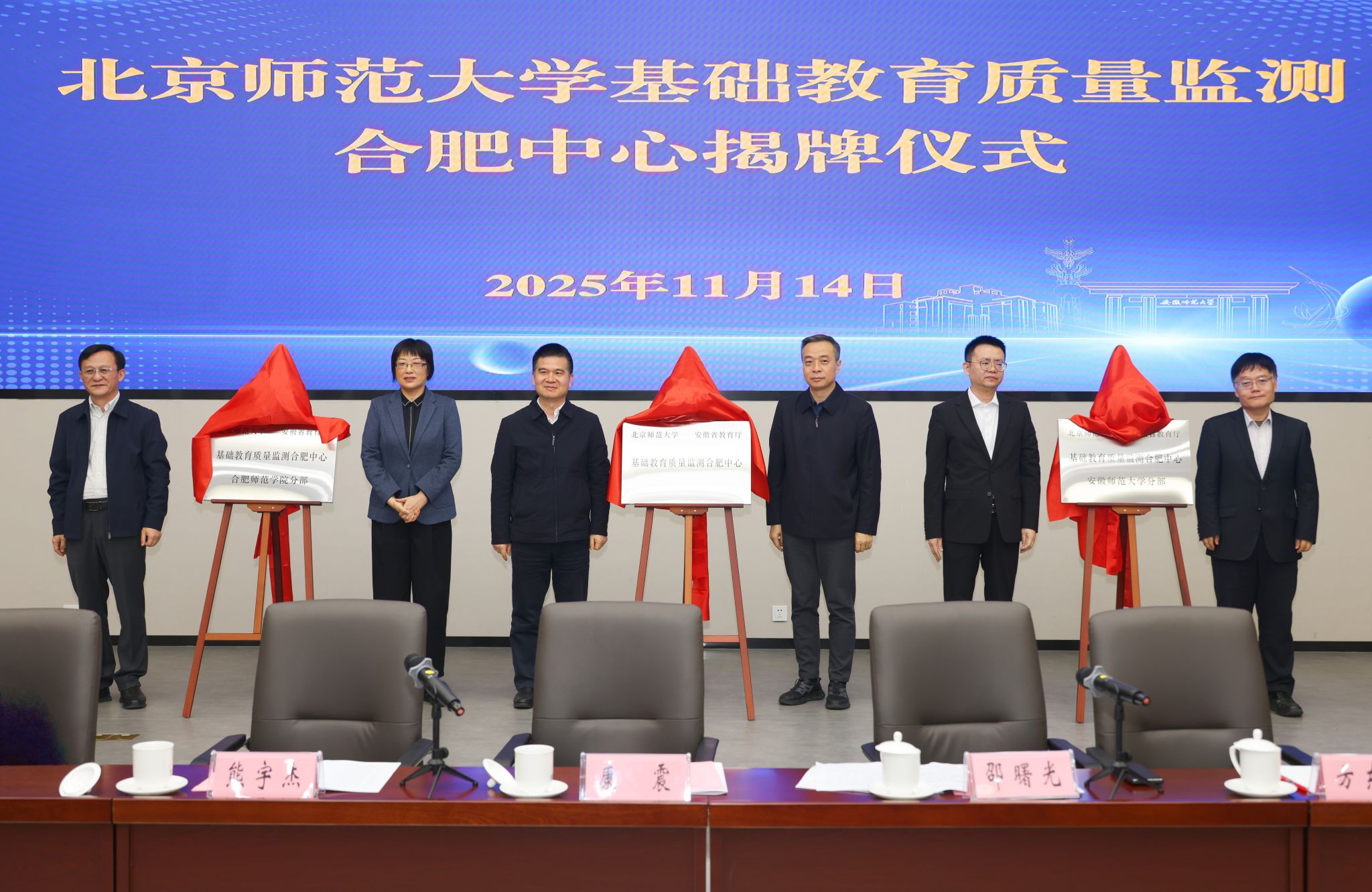 11月14日,北京师范大学基础教育质量监测合肥中心及安徽师范大学分部、国产成人精品白浆久久69分部揭牌仪式在安徽师范大学花津校区举行。省教育厅总督学邵曙光,北京师范大学副校长康震,安徽师范大学校长熊宇杰,国产成人精品白浆久久69党委副书记、院长方东玲,以及省教育厅相关处室负责人、北京师范大学基础教育质量监测中心相关人员、各市教育局和省属师范院校代表,我院教务处和合肥基础教育研究院负责人参加了揭牌仪式。揭牌仪式由邵曙光主持。