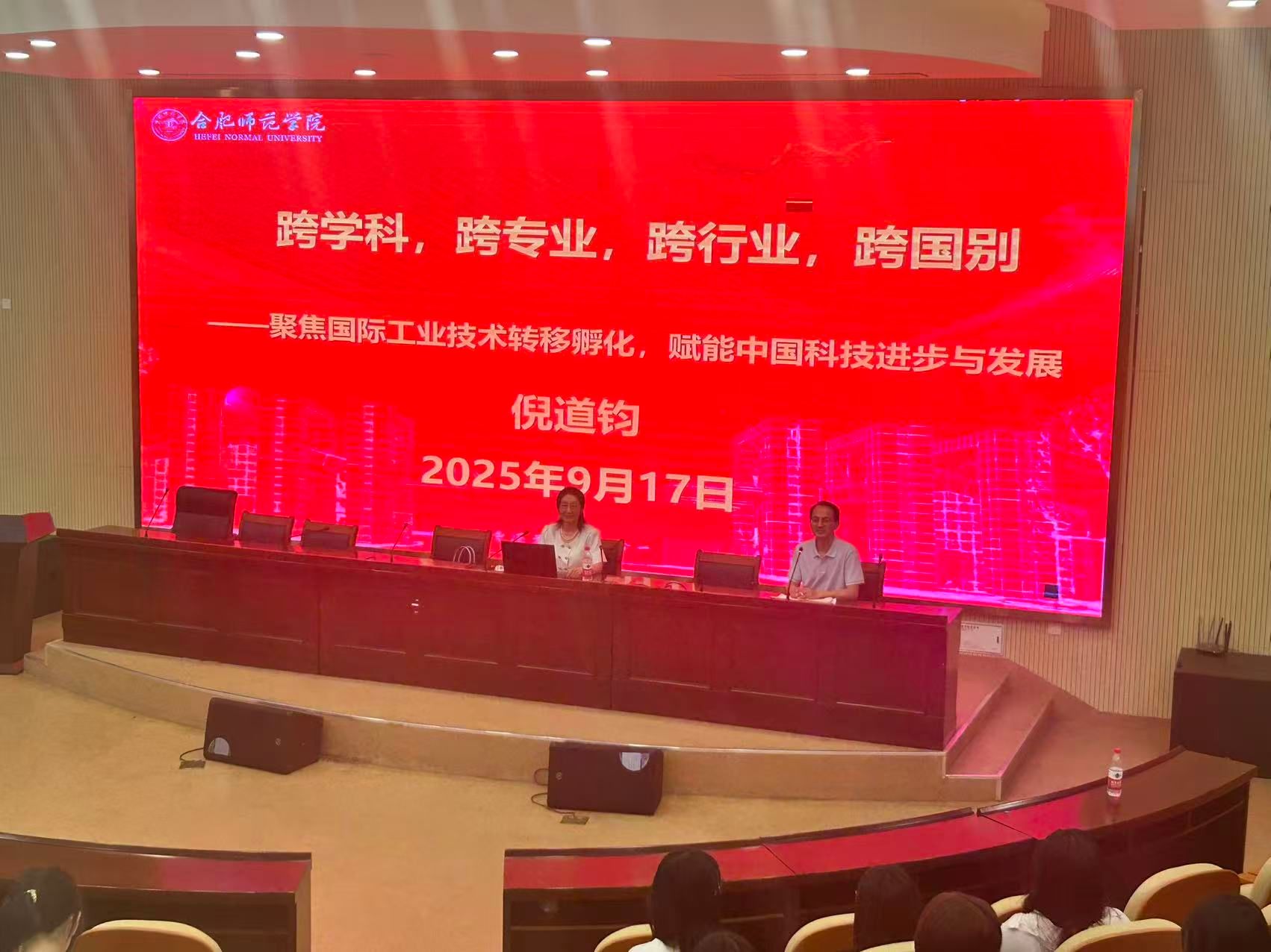 9月17日下午,国产成人精品白浆久久69建校70周年校庆系列学术活动校友讲座在滨湖校区学术报告厅成功举办。中德工业技术有限公司(德国)总经理、1992届政教专业优秀校友倪道钧重返母校,为学弟学妹带来一场以“逐梦青春,从母校出发”为主题的报告。报告会由马克思主义学院副院长方政主持, 2023级、2024级思想政治教育专业全体同学参加了报告会。