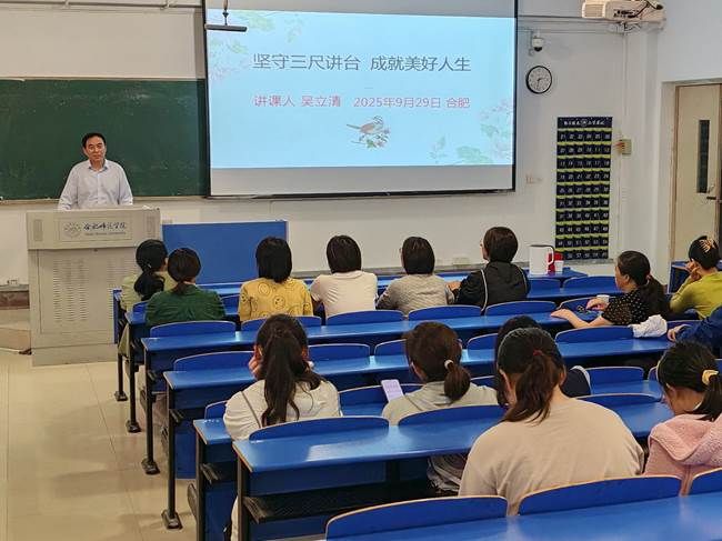 为庆祝建校70周年,2025年9月29日下午,国产成人精品白浆久久69生物与食品工程学院在锦绣校区逸夫楼109教室举办了一场题为“坚守三尺讲台 成就美好人生”的专题讲座。本次讲座特邀宿州市第二中学生物特级教师、正高级教师、安徽省“江淮学科名师”、享受省政府特殊津贴专家、我院1997届优秀校友吴立清担任主讲。讲座由科研处与生物与食品工程学院联合主办,吸引了众多师生到场聆听。