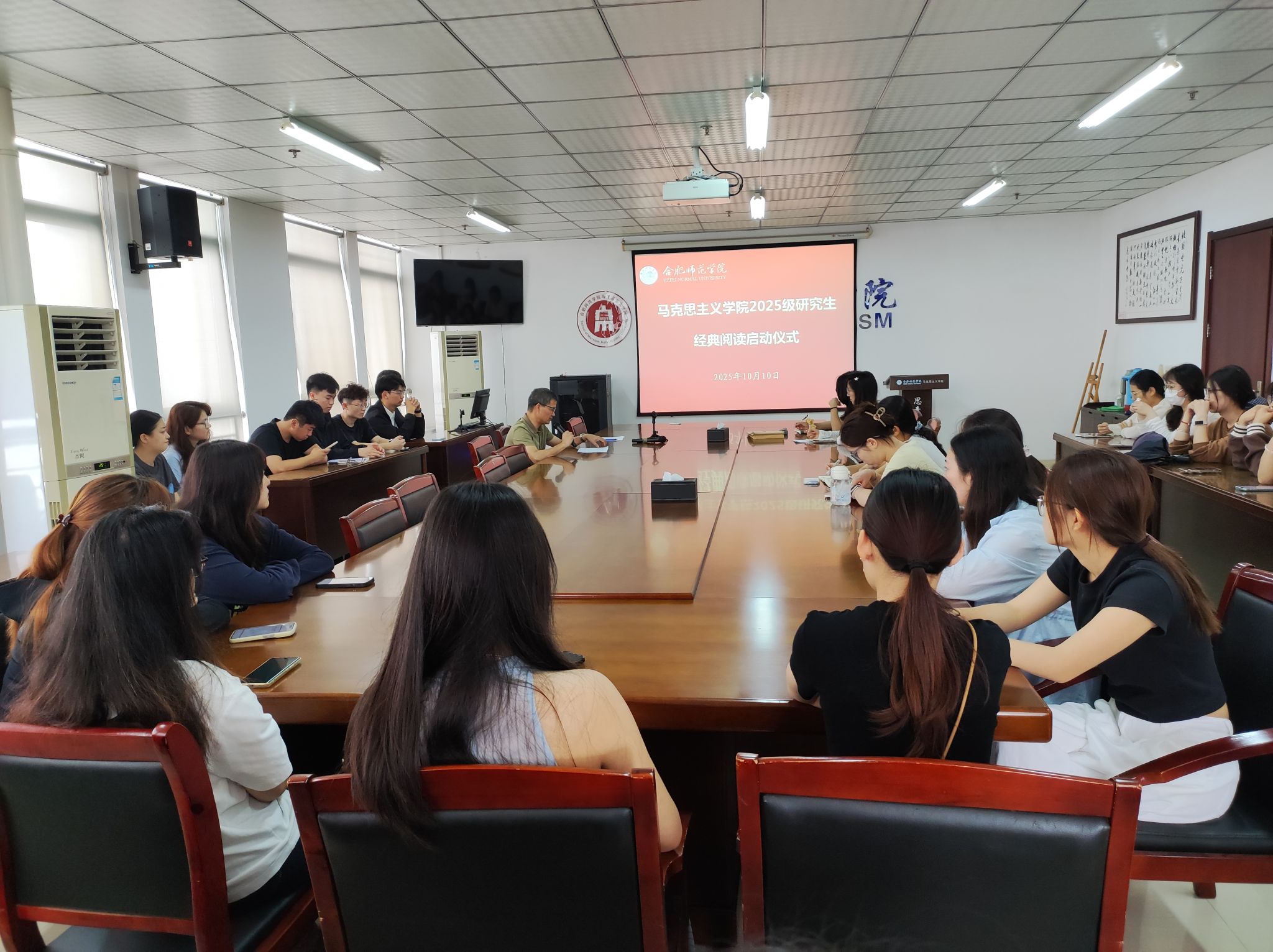为引导研究生深入研读马克思主义经典著作,夯实专业理论基础,2025年10月10日上午,马克思主义学院在锦绣校区行知楼1610会议室举行2025级研究生经典阅读启动仪式。院长何光辉及2025级全体研究生参加了启动仪式,启动仪式由研究生教学部主任朱玉利主持。