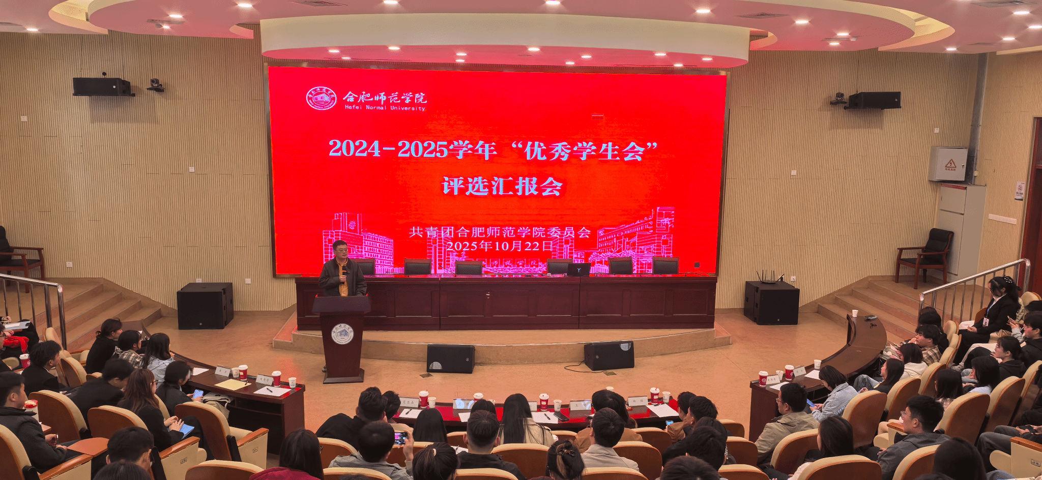 10月22日下午,学院在滨湖校区学术报告厅举行2024-2025学年“优秀学生会”评选汇报会。院团委、党委宣传部、教务处、学生工作部、就业创业工作处、滨湖校区综合管理办公室有关负责人和教师,各二级学院团委书记、学生代表参加评审。院团委全体人员,校、院两级学生会工作人员参加会议。