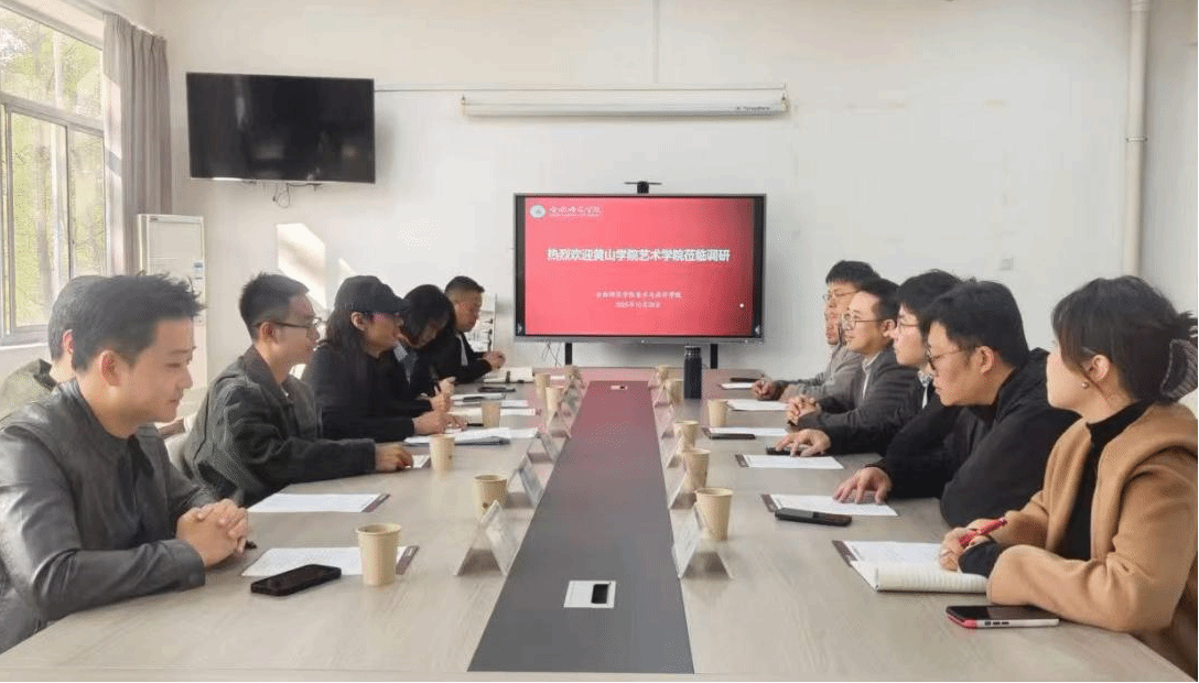 在调研座谈会上,双方围绕专业设置优化、招生情况、人才培养方案修订、硕士点申报推进及AIGC在专业教学中的应用五大核心议题展开深度探讨。李辉周详细介绍了我院专业建设成果、科研平台运行情况。梁军对我院学科建设、教学改革等方面给予高度肯定,并介绍黄山学院艺术学院的整体发展现状与特色教学模式,并与我院各专业教研室主任就课程体系构建、实践教学等具体工作交换了意见。