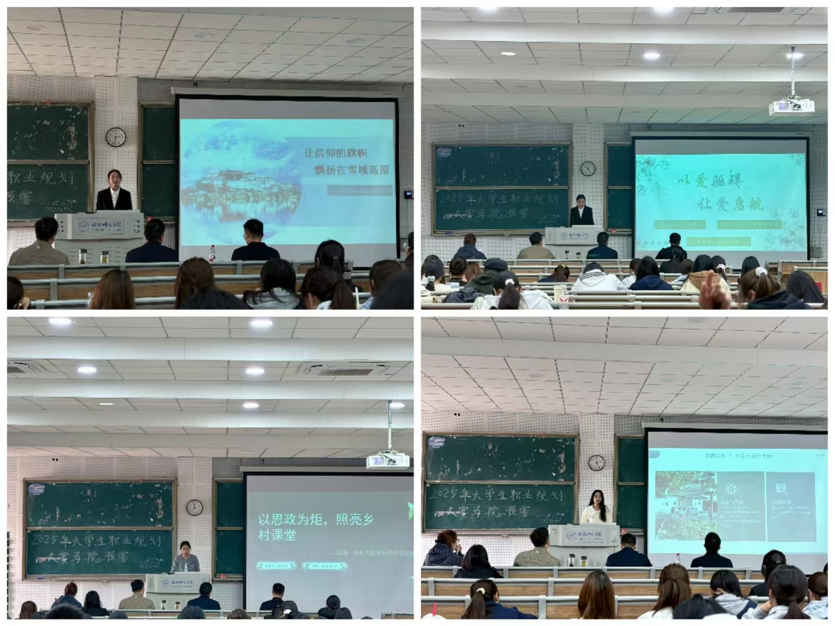比赛现场,选手们展现出鲜明的职业定位与饱满的青春风采,全方位展现马院学子的蓬勃生命力与清晰的职业思考。就业赛道选手以详实的规划方案,生动诠释“深耕课堂,笃行致远”的师者初心;成长赛道选手更是各显所长,他们以《扎根乡土,铸魂育人》为题,立志投身乡村教育事业,让职业理想扎根乡土;他们聚焦雪域高原,规划成为援藏政治教师,彰显青春的辽阔格局;他们以爱心为基、以思政铸魂,将特教老师作为职业方向,凸显特教事业的崇高价值。期间,评委团围绕“职业必备素养与操守”“职业规划动态调整”“职业实践支撑路径”三大核心维度进行点评提问,既肯定选手规划中的亮点,也精准指出不足并提供优化建议,切实助力学子完善职业规划、提升认知深度。