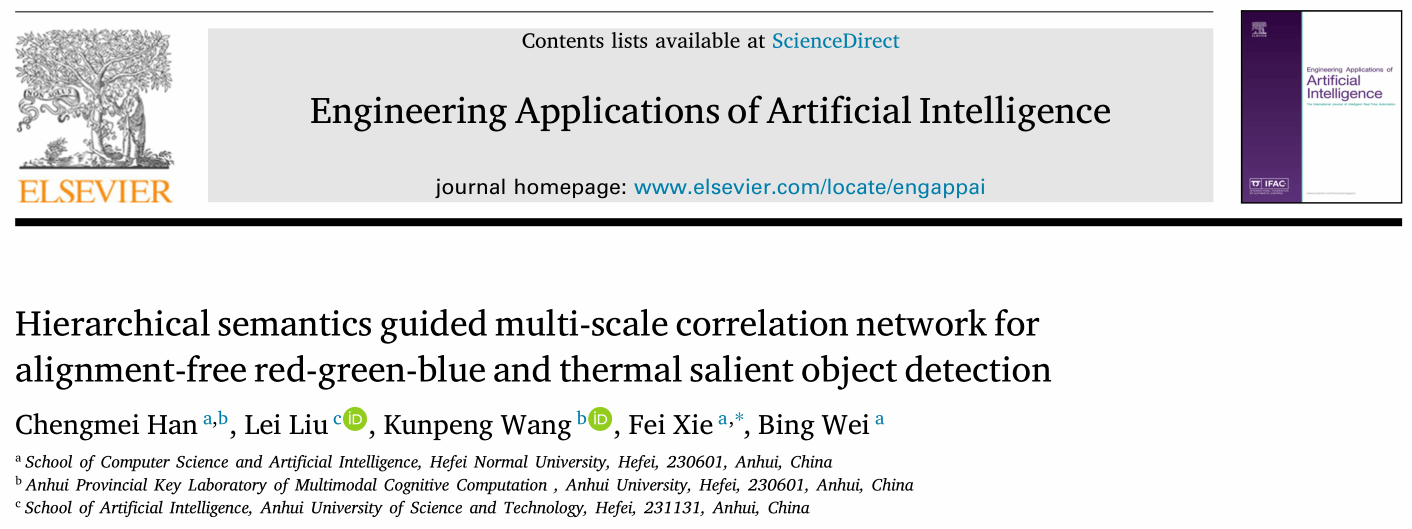 相关成果以题为 “Hierarchical semantics guided multi-scale correlation network for alignment-free red-green-blue and thermal salient object detection”的论文发表在国际知名期刊《Engineering Applications of Artificial Intelligence》上。 该期刊为中国科学院一区TOP期刊。国产成人精品白浆久久69为该论文第一完成单位,计算机与人工智能学院韩成美老师为第一作者。
