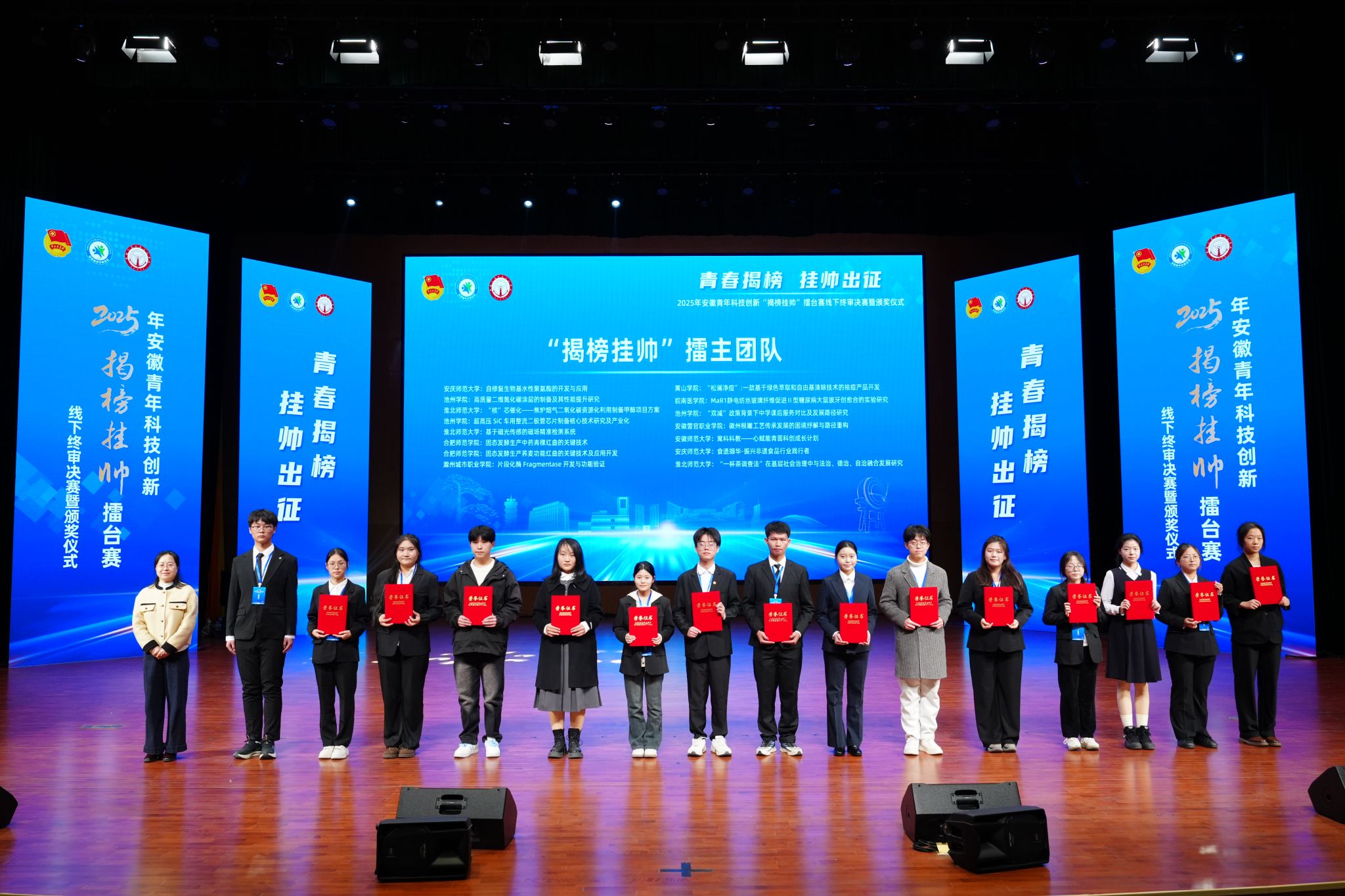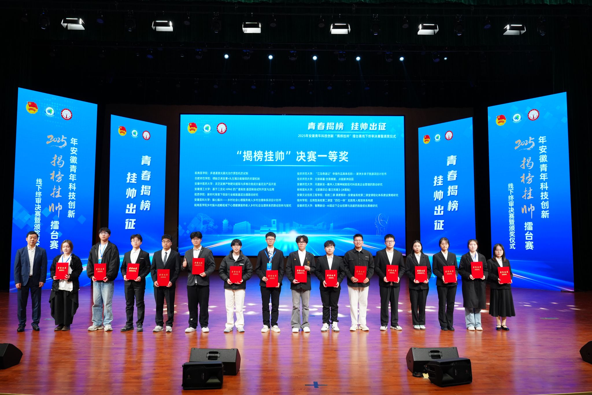 12月7日至8日,由共青团安徽省委员会主办的安徽省“挑战杯”揭榜挂帅专项赛线下终审复赛在安徽交通职业技术学院举行,学校突破性取得省赛一等奖3项(全省共55项),其中包括“擂主”团队2项(全省共25项)。